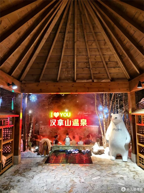 玩好以后,我们先去小镇内的汉拿山温泉,享受雪中泡温泉的快乐。这也是套餐中的权益,成人送一次,儿童需要自己付费,另外租衣柜的20元付费需要自理。