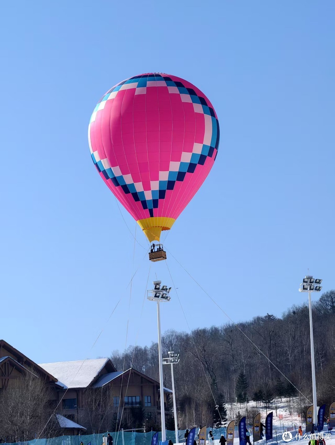 眼尖的读者应该在前面的图里就看到度假区有热气球项目了。这是一个付费项目,一个人上去要200多。有点小贵,但也是难得的体验了。热气球有多道绳索绑定,控制不让飞远。