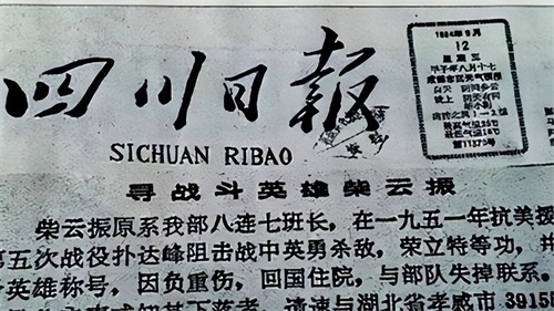 后来,在多方艰苦寻找,终于在1984年在岳池县找到失踪三十三年的战斗英雄柴云振。