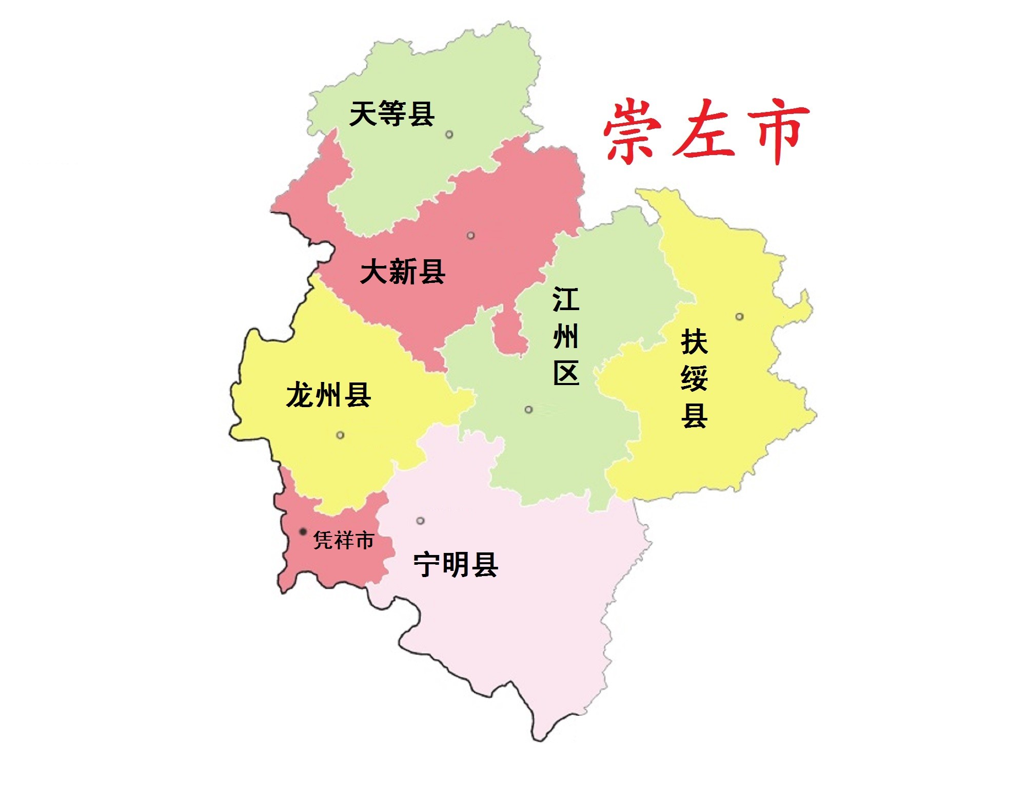 崇左市,市政府驻江州区。位于广西壮族自治区西南部,北邻百色市,东临南宁市,东南接防城港市,西与越南接壤。