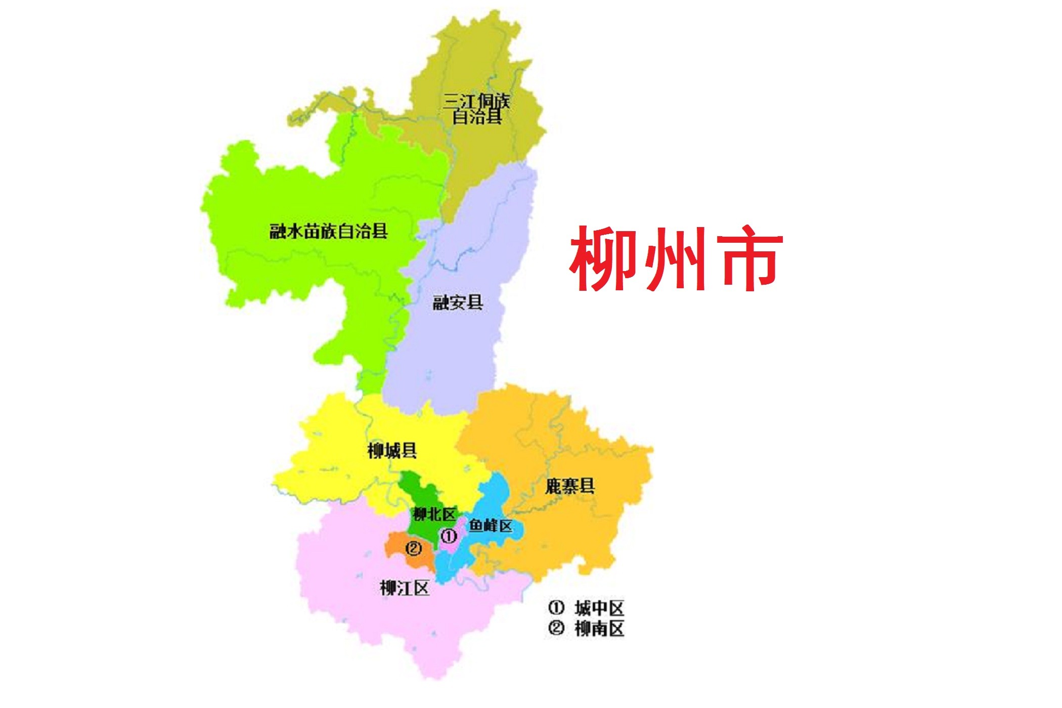 全市总面积18596平方千米,下辖5个区(城中区、鱼峰区、柳南区、柳北区、柳江区)、3个县(柳城县、鹿寨县、融安县)、2个自治县(融水苗族自治县、三江侗族自治县)。截至2022年末,柳州市常住人口419.12万。