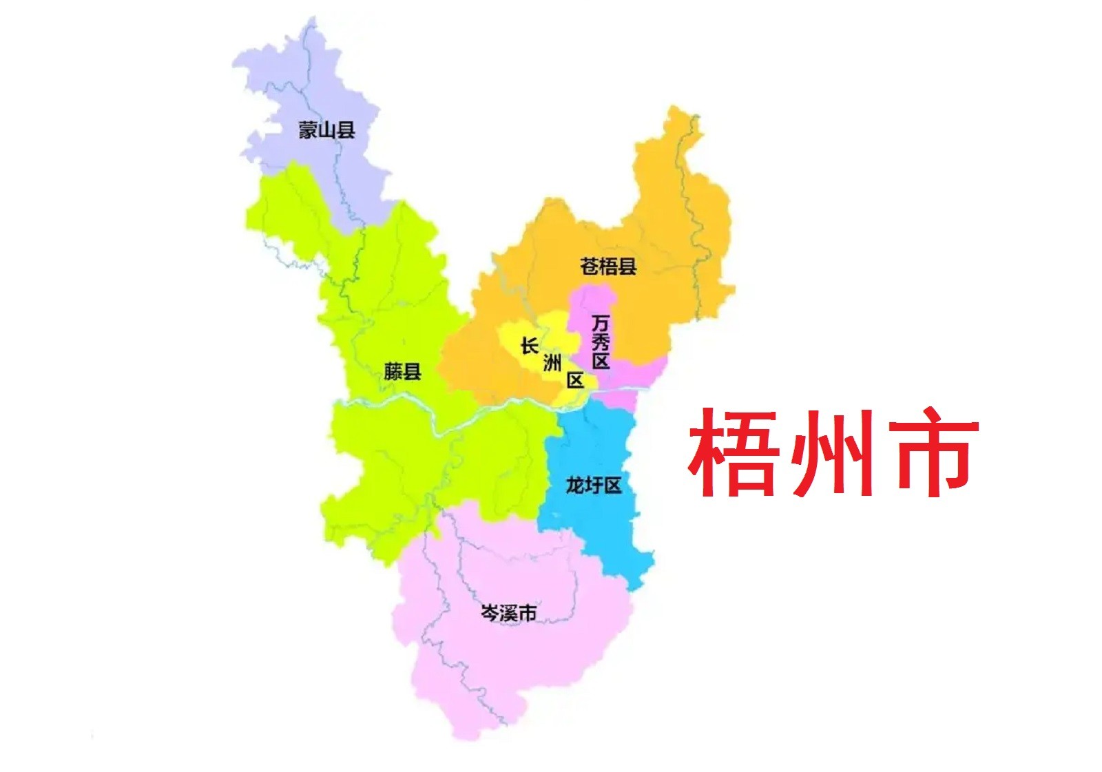 全市总面积1.26万平方千米,下辖3个区(万秀区、长洲区、龙圩区)、3个县(苍梧县、藤县、蒙山县)、代管1个县级市(岑溪市)。截至2022年末,梧州市常住人口283.1万人。