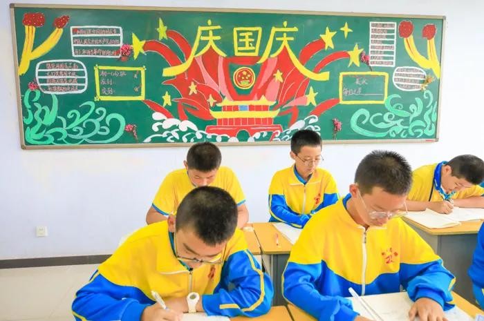 国庆72周年将至,为进一步弘扬爱国精神,让孩子们树立远大理想,增强班级凝聚力,营造班级文化,衡水市滨湖新区志臻中学开展“迎国庆,颂祖国”黑板报主题活动。各班师生紧紧围绕黑板报主题精心准备,积极参与,认真查阅相关资料,充分发挥了班集体团结协作的精神,出色地完成了此次任务。
