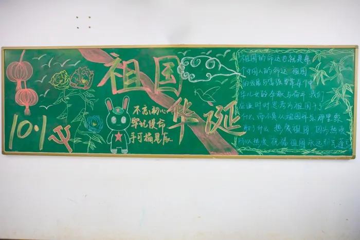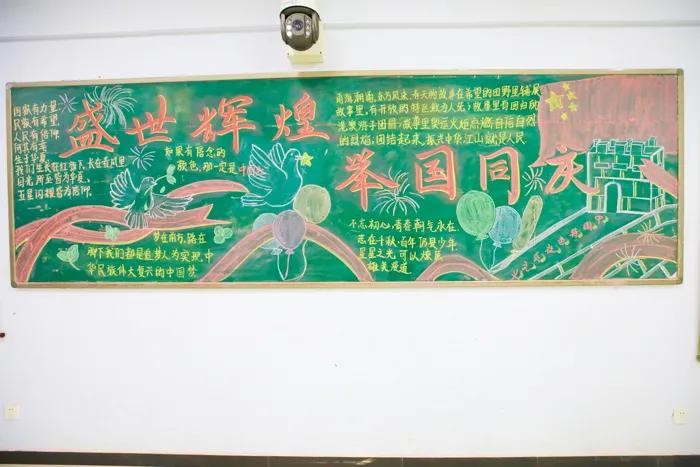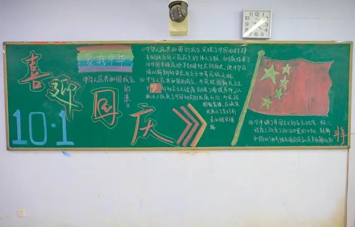 各班通过文字和图画的形式表达了对祖国的热爱,对未来美好梦想的向往与追求!一幅幅由同学和老师用心勾勒出的板报构成了学校里一道道亮丽的风景线。