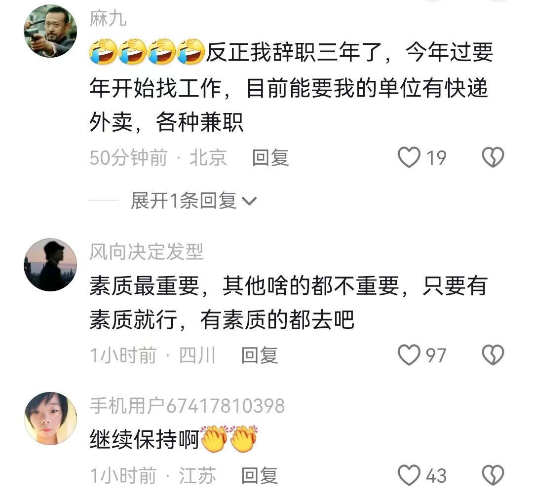 麻九网友作为还坚持在北京的一员,切身体会的说明了低学历在北京不好混啊,快递外卖可能就是唯一的出路了,这俩个还不行的话就只能去打零工了。