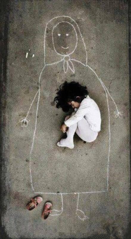 02:母爱是这个世界上独一无二的爱,图片中孩子的妈妈去世了,孩子很想念妈妈,于是在地上画出了她认为的妈妈模样,脱掉鞋蜷缩的躺在妈妈的怀抱里安然睡去。
