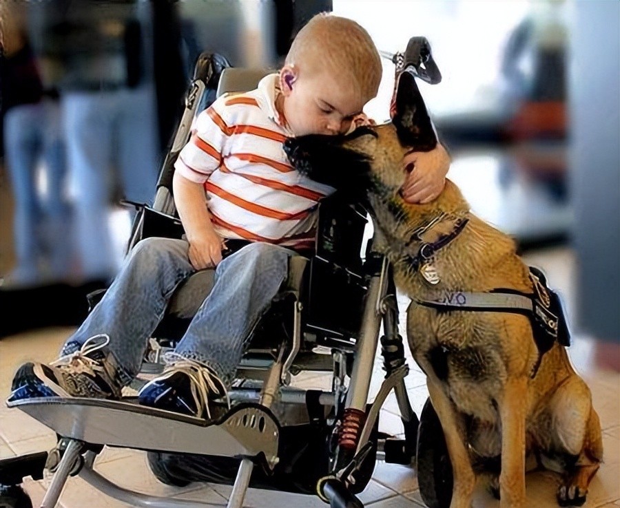 16:残疾男孩和他的工作犬一个感人的拥抱。