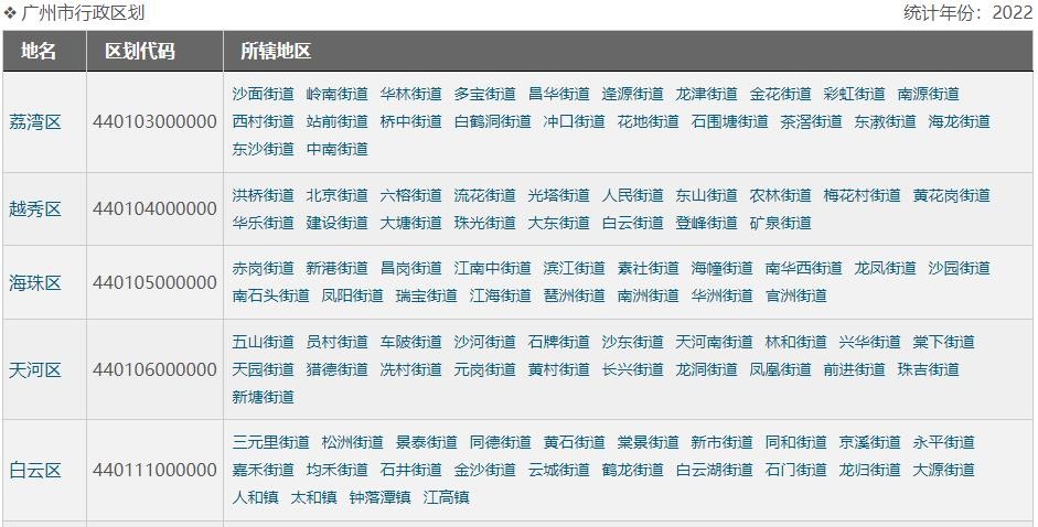 荔湾区,辖22个街道。面积62平方公里。2023年户籍人口79.58万,2023年常住人口112.37万。2022年GDP1215.57亿。