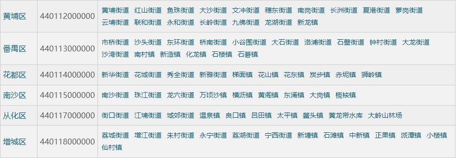 广东省广州市11个区的面积、户籍人口、常住人口和GDP数据