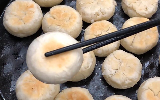 第七步:在锅里刷薄薄的油,放入做好的饼,然后小火慢煎,盖上锅盖,煎至底面变黄后翻面。两面都煎至金黄就可以出锅装盘了!(这一步小易大概煎了24分钟)