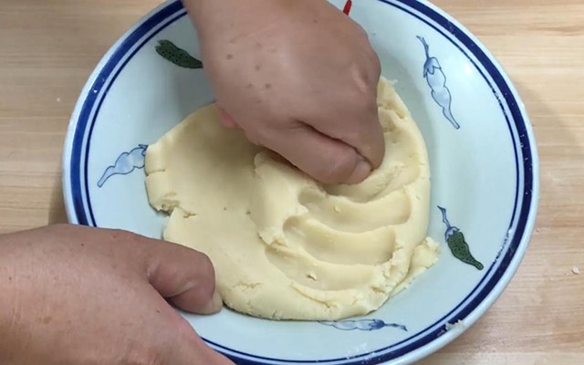 第一步:和面(油皮面团)。在碗中准备150克普通面粉,再加入25克玉米油和65克清水,拌匀后下手揉成团,充分揉匀后,移到案板上继续搓揉,揉至面团表面细腻光滑,然后放在一旁备用