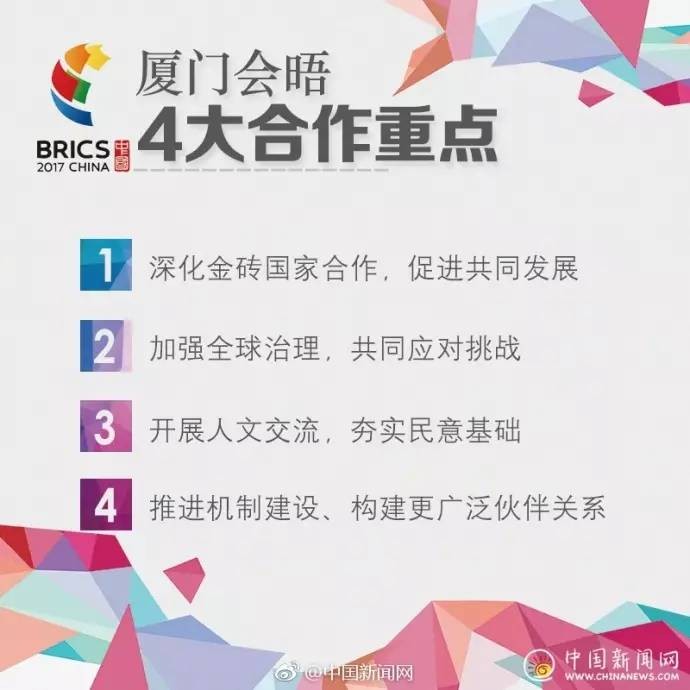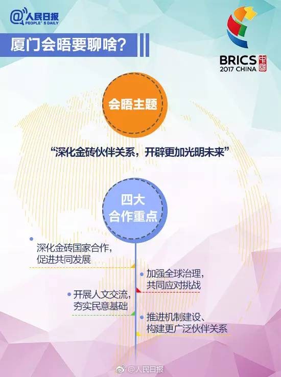 世界在期待,金砖扬帆第二个“金色十年”新航程,传递合作应对发展挑战的信心,贡献完善全球治理的正能量。 下面让我们简单了解金砖会晤吧~