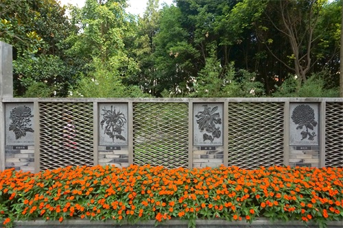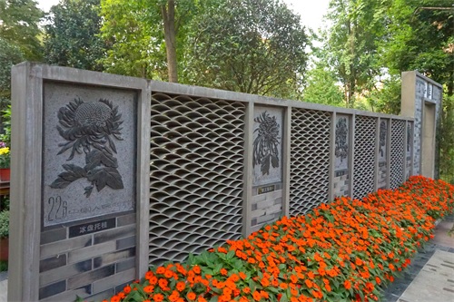 园内有咏菊诗歌墙、菊花邮票文化墙,文化墙雕刻的是中国邮电部1960年由前发行的菊花特种邮票。