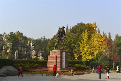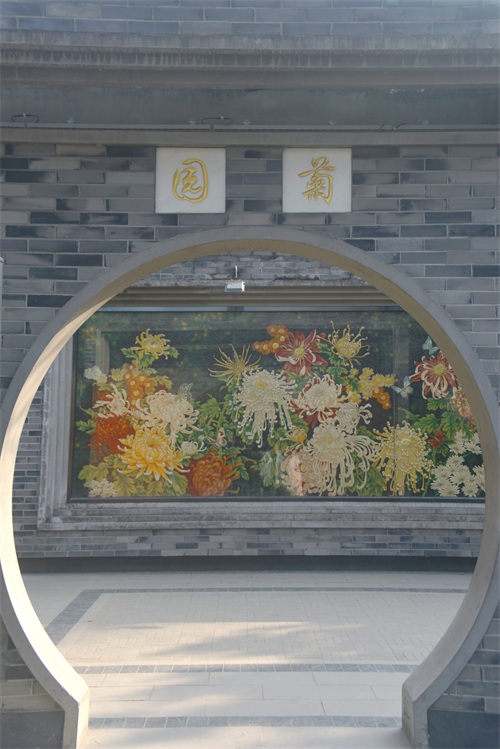 人民公园有一个菊文化主题的菊园,园林入口就是高2米,长7米的“百菊图”雕漆漆画照壁屏风。