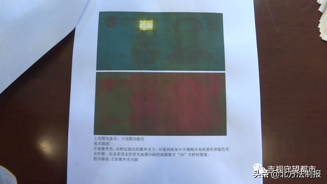 杜佳男:我们的鉴定文书上显示,真钱在专业仪器上显示是有水印的,嫌疑人制作的假币在仪器里显示什么都没有,就一片空白了。