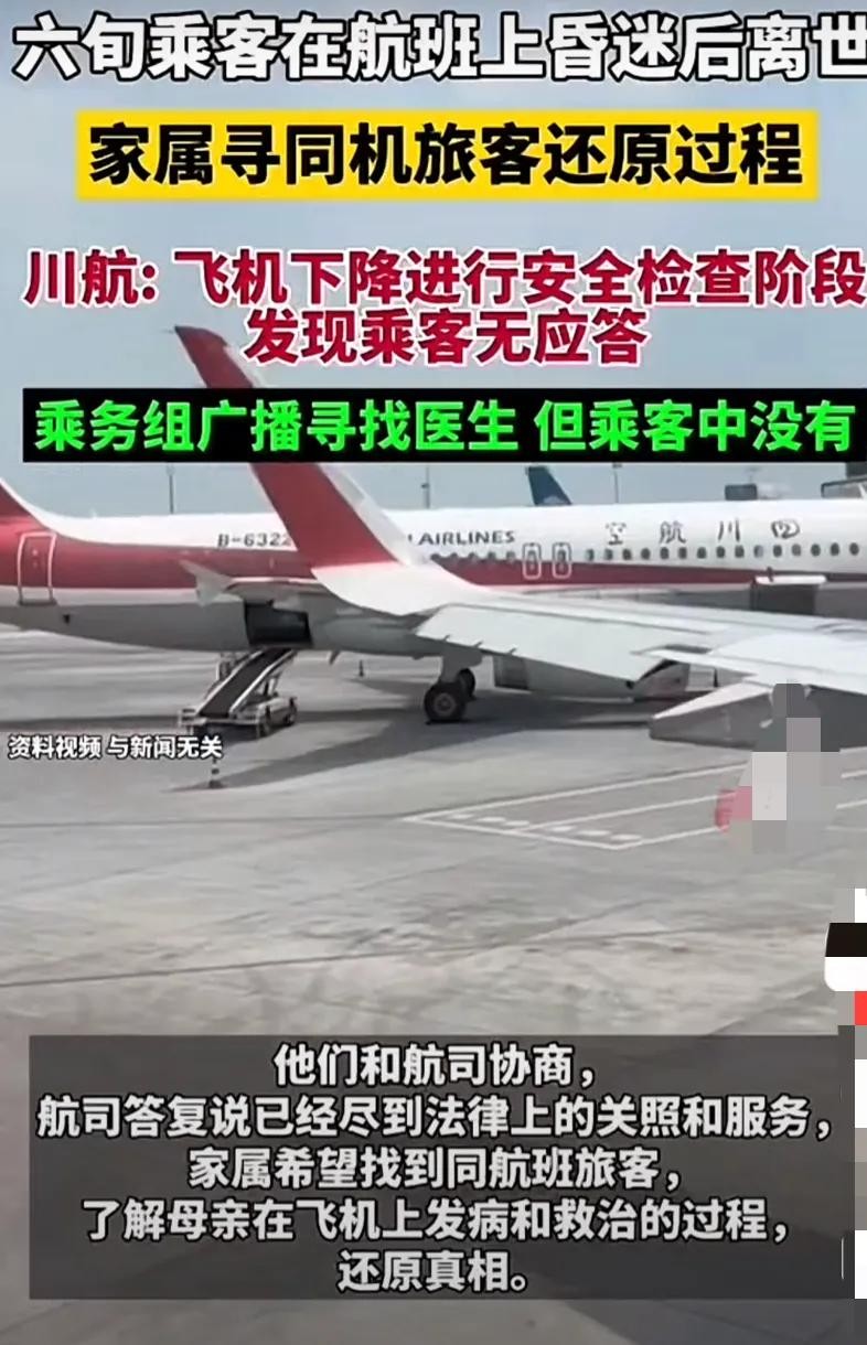 六旬乘客在航班上昏迷后离世,家属寻同机旅客还原过程,川航回应