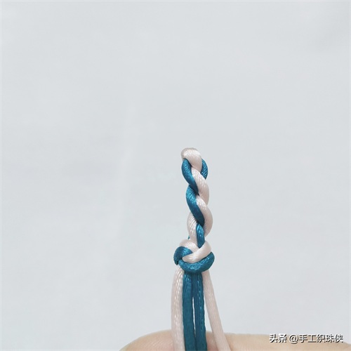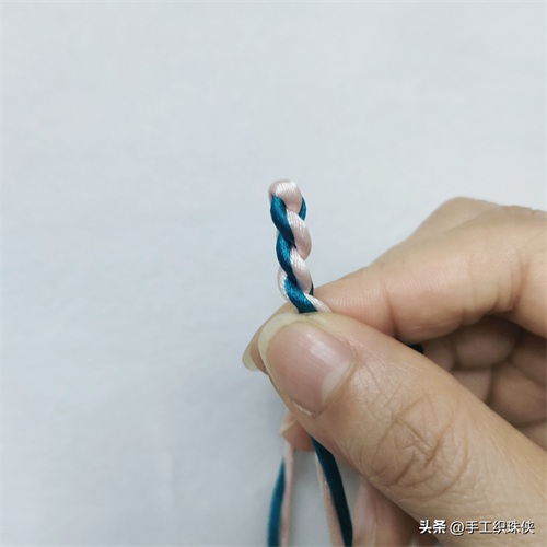 为了便于教学展示,特意用了双色线,双绳对折搓成麻花状,然后打个蛇结来固定。