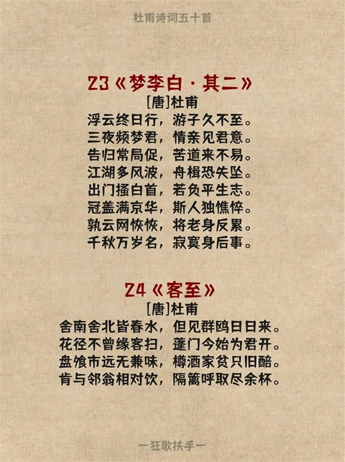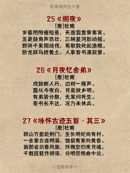 杜甫最经典的五十首诗词,每一首都是千古绝唱!