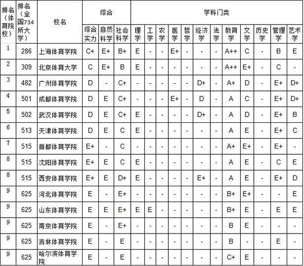 2014年体育院校排行榜(武书连2014中国734所普通高校)