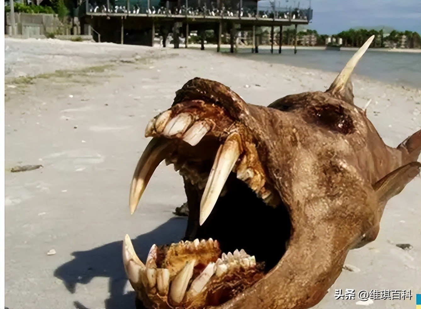 3.美国海滩惊现不明动物遗骸,形象可怖