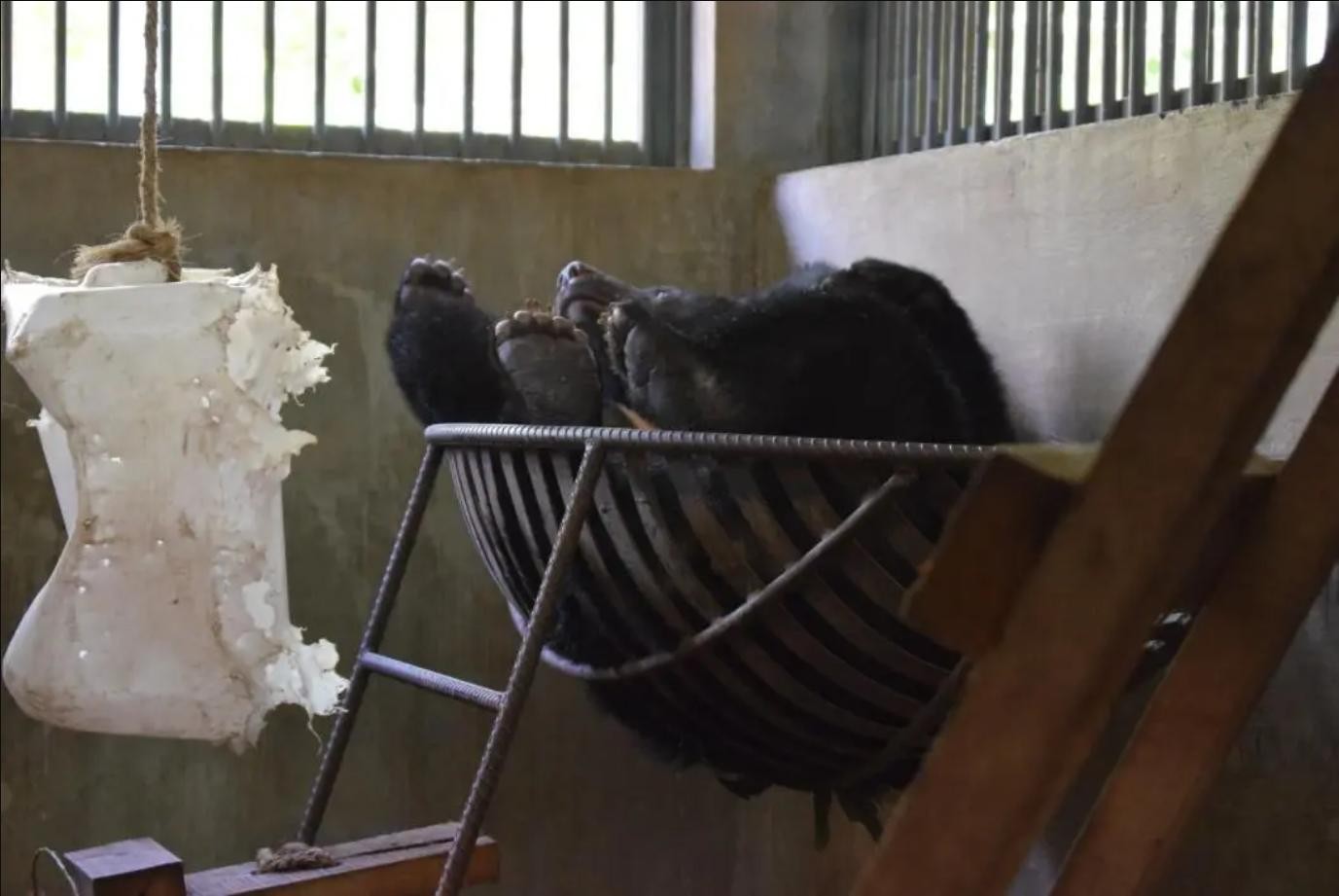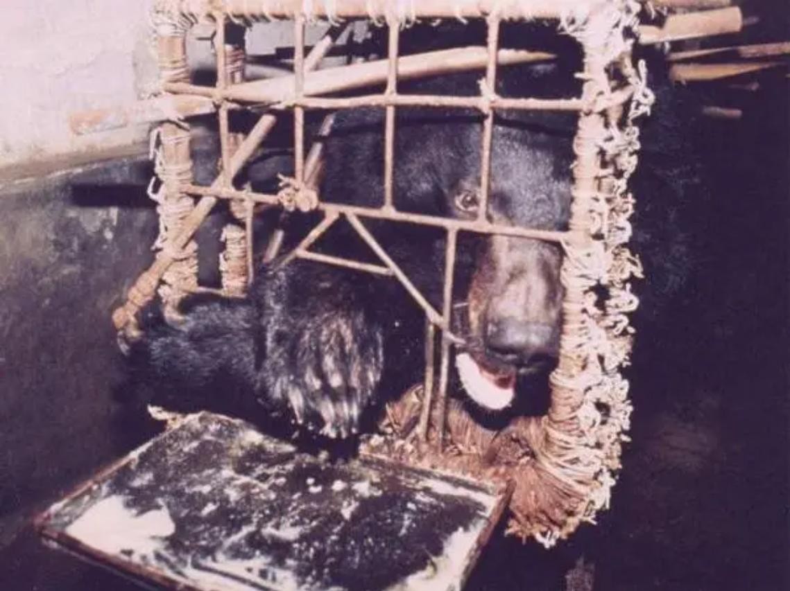 熊胆粉的产出主要依赖于熊胆的提取。然而,熊的生活却并非如人们所想象的那样自由和富有乐趣。从熊出生开始,它们就被拘禁在狭小的囚笼中,无法舒展身躯,无法感受阳光的温暖,更不用说自由地奔跑和觅食了。这些囚禁的熊被精心安排在繁殖场中,作为胆汁的“生产线”。他们被不人道地长期关押,忍受冰冷的铁栏和剧烈的疼痛,直到死去。