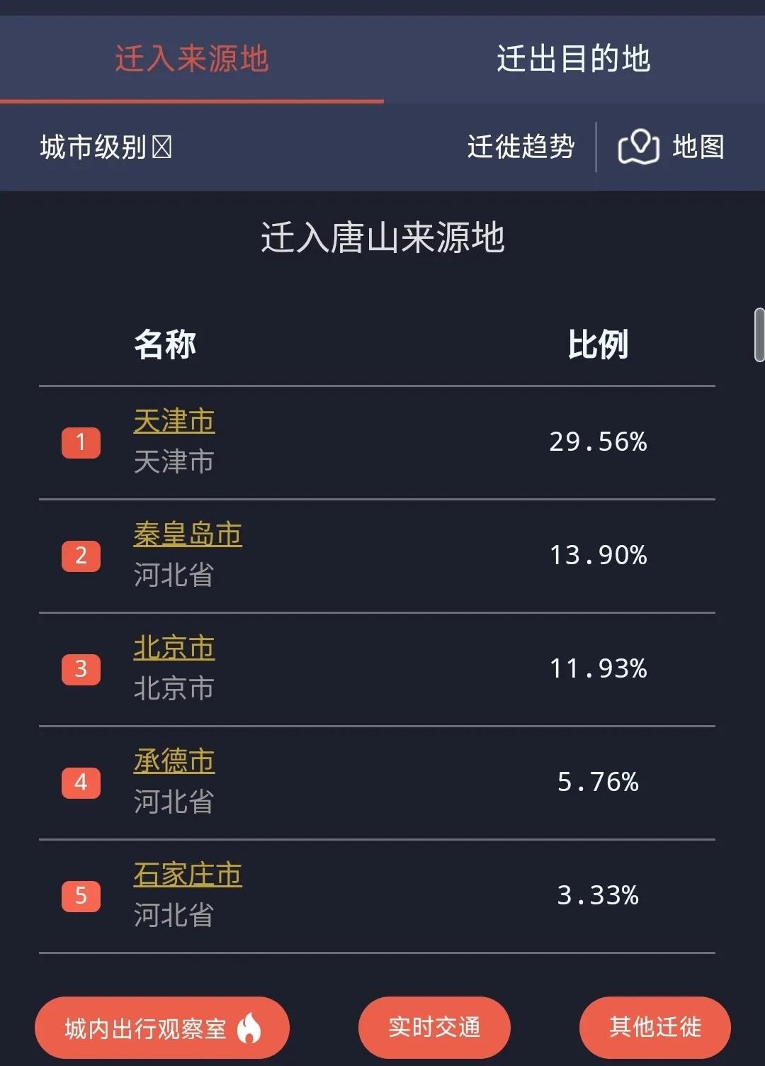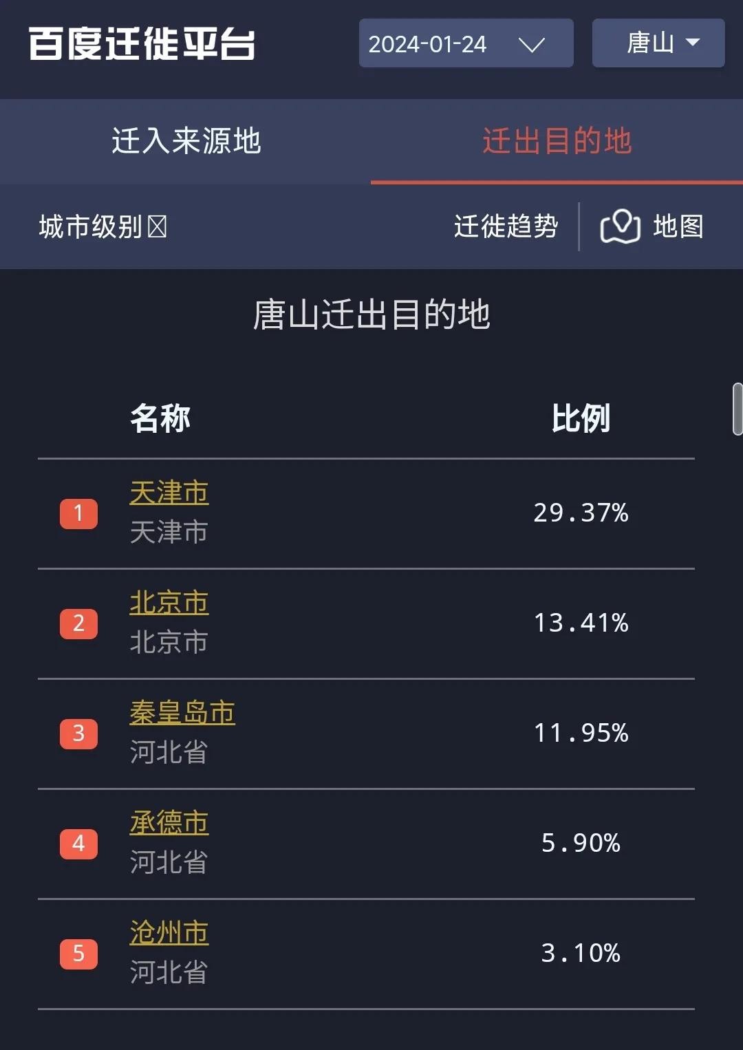 而迁出唐山的目的地还是天津,也是接近30% 。