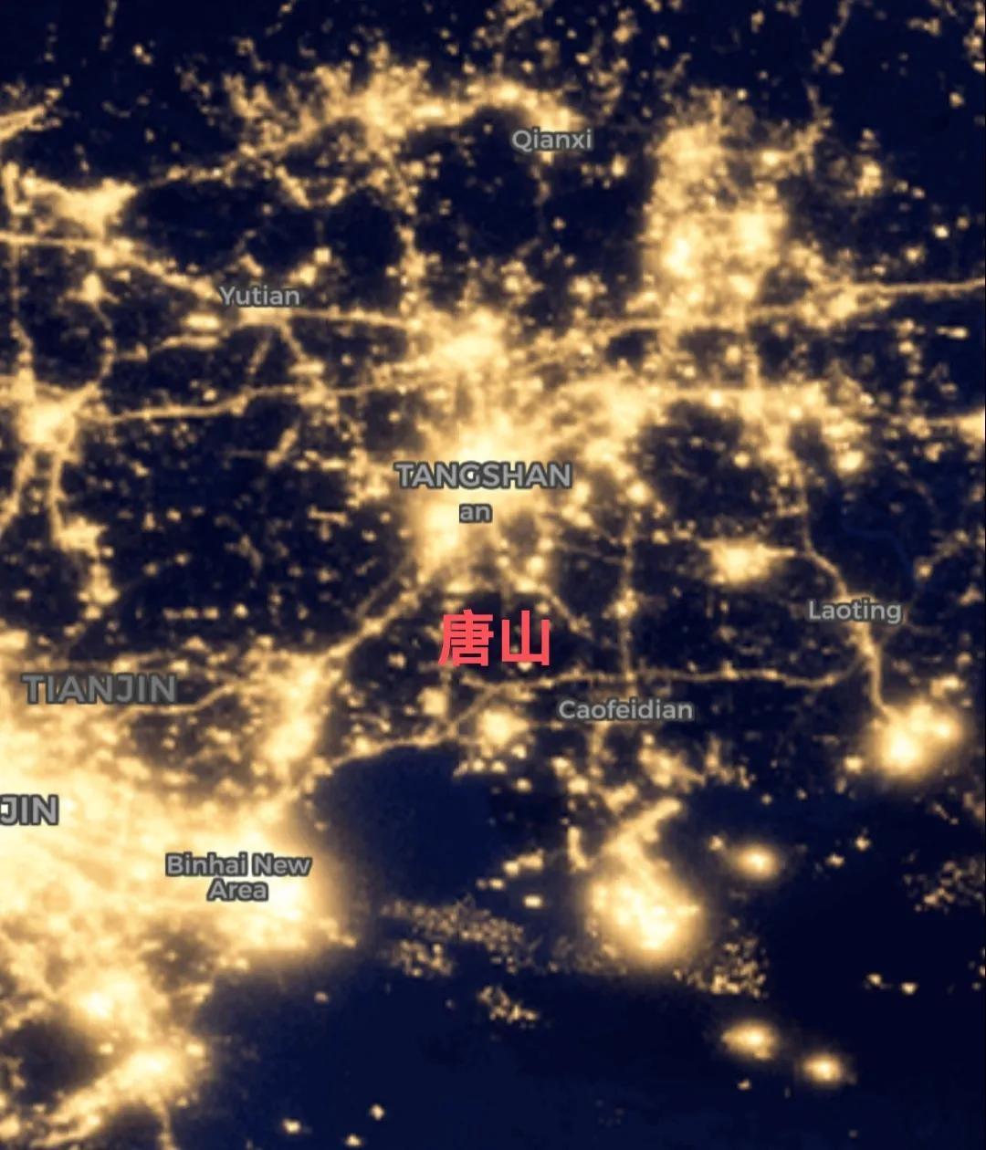 唐山的夜景看上去还不错,周边城市可以组成城市群。
