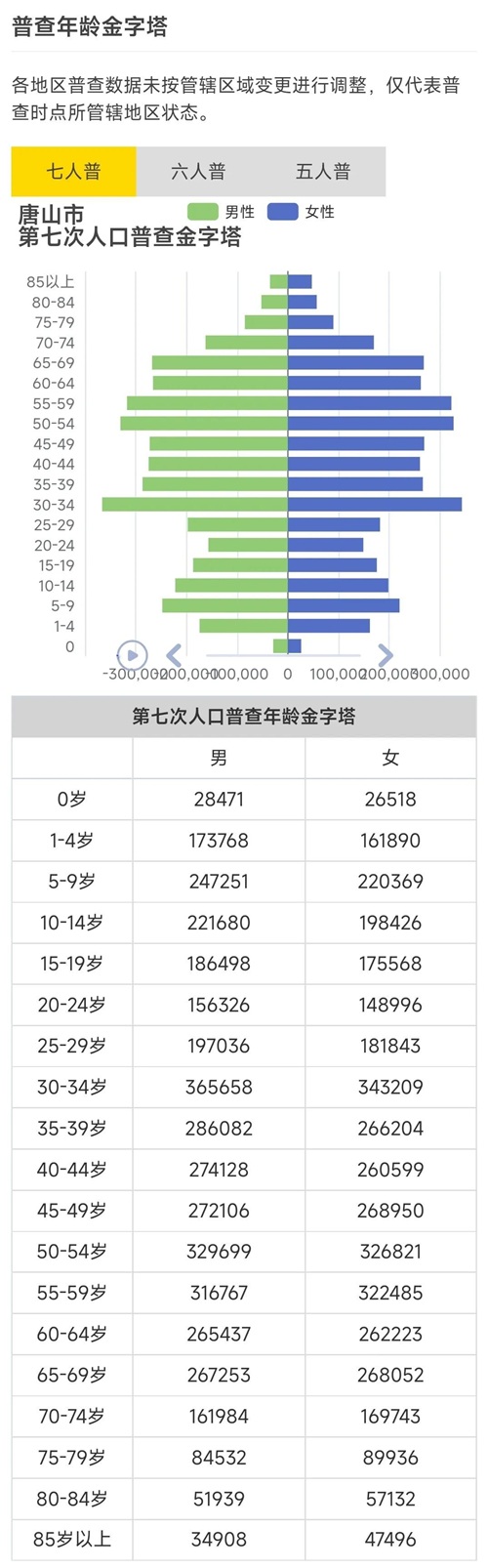 唐山人口年龄段来看,人口老龄化趋势明显。青少年占比较少。