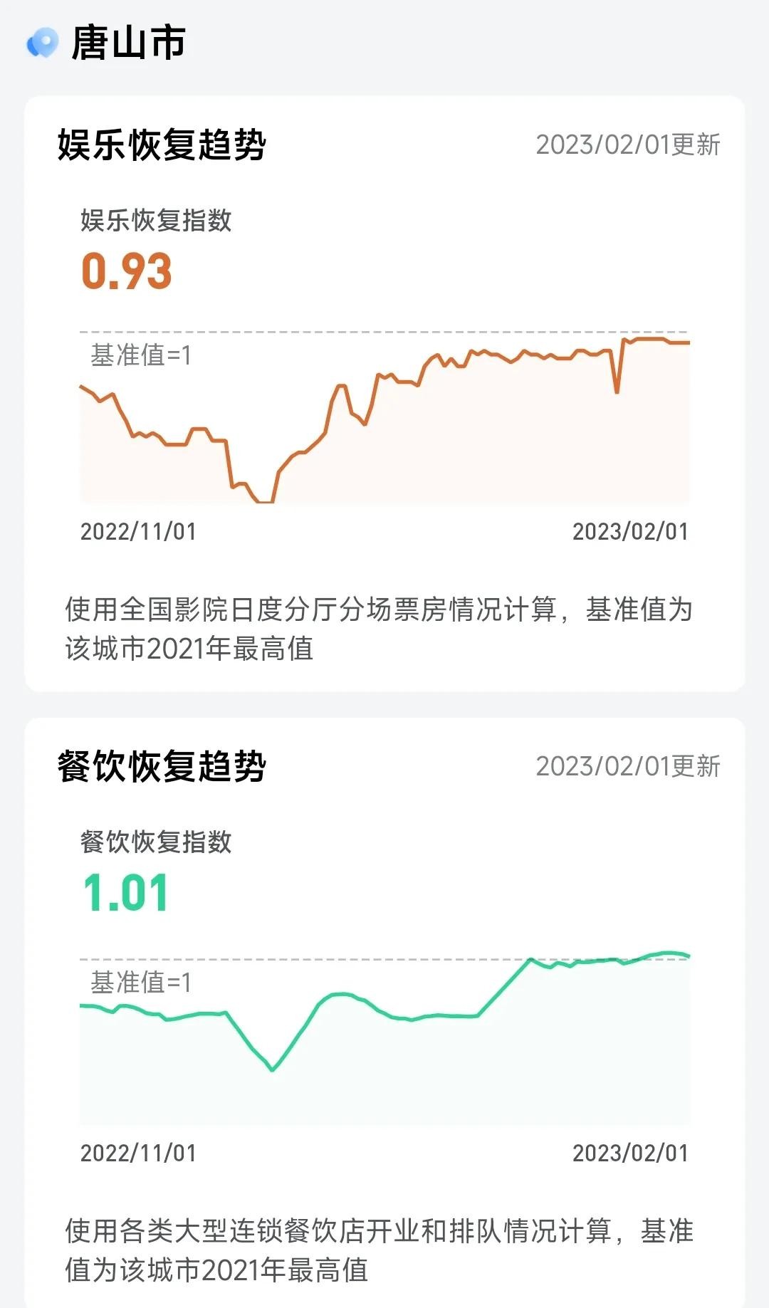 而目前唐山的娱乐,餐饮指数回升明显,趋于正常。