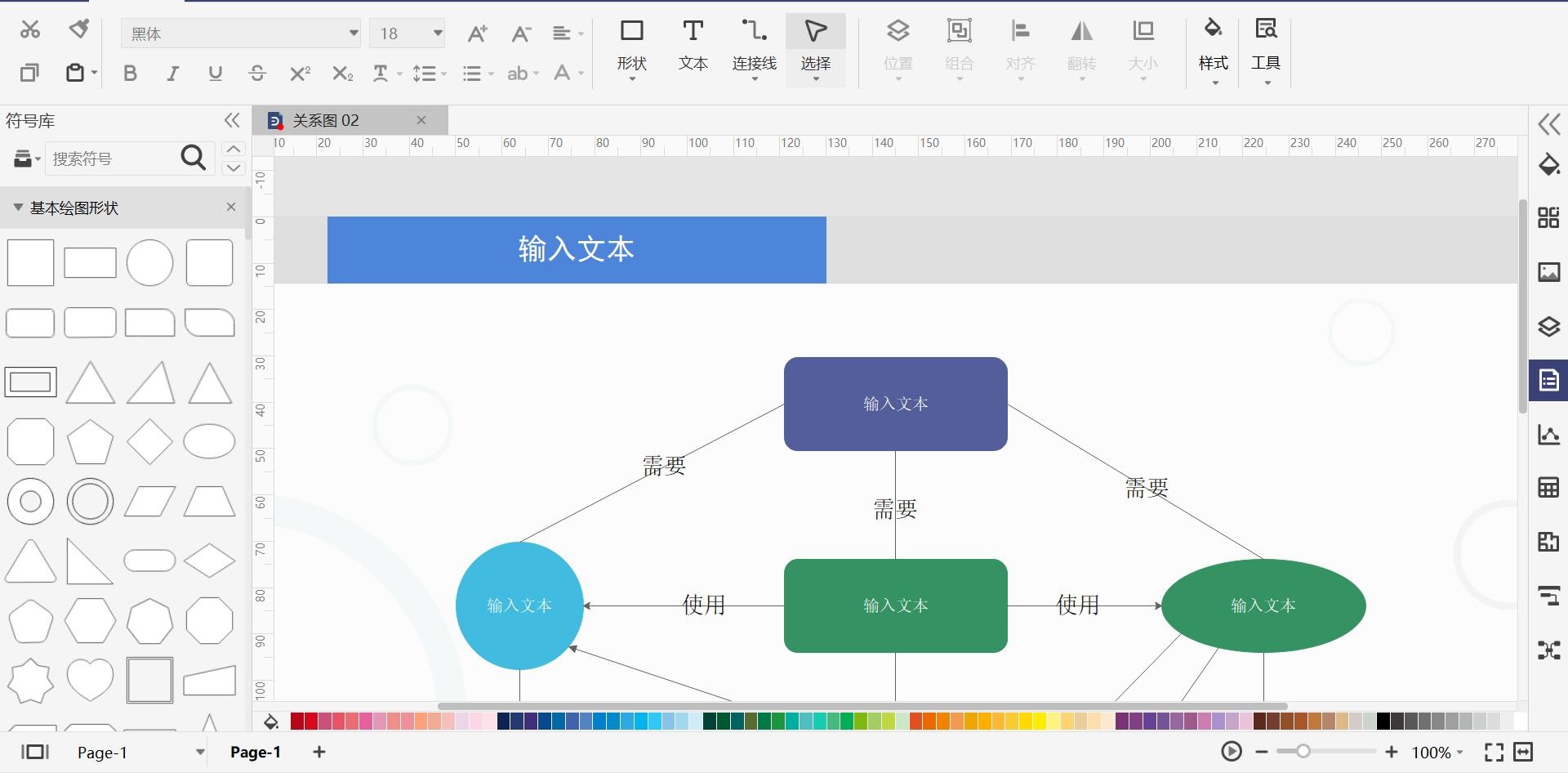 第三步:先点击画布中的关系图,再点击左侧基本绘图形状中的符号,对关系图进行添加,也可以直接对模板进行修改和删除等相关操作。