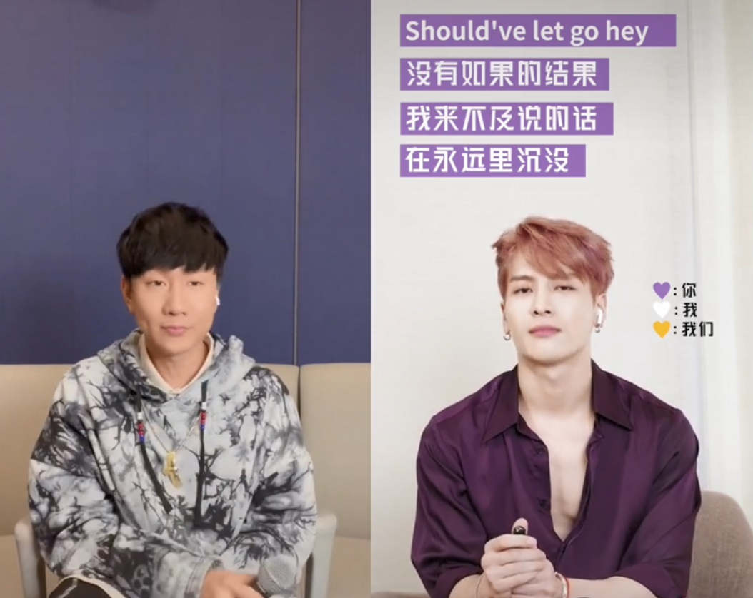 12月19日,林俊杰和王嘉尔在某短视频平台直播连线现场合唱,为二人刚刚联手推出的合唱单曲《过》打榜造势。