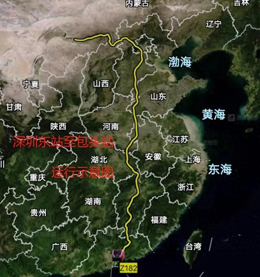 Z182是一趟从经济特区深圳开往内蒙古城市包头的旅客列车,这也是唯一一趟从深圳开往包头的旅客列车。