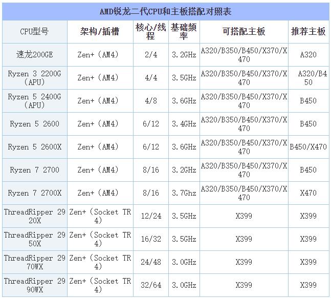 主板和cpu对照一览表 AMD锐龙二代CPU和主板搭配对照表