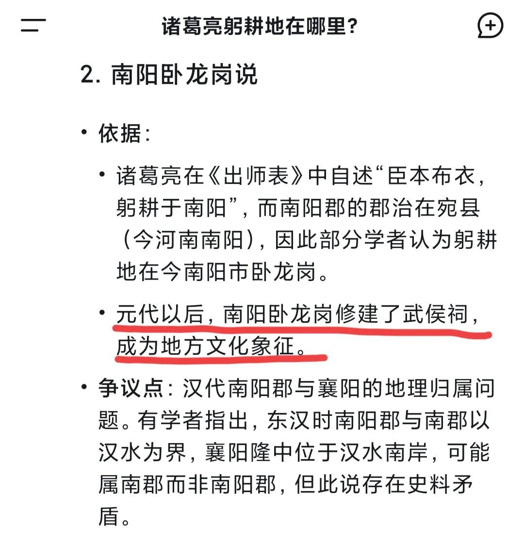 诸葛亮躬耕地到底在南阳还是襄阳?DeepSeek给出了明确的答案。