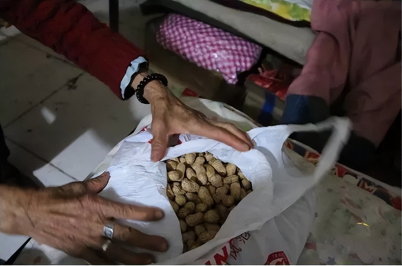 不管谁来,蒋贵英都会拿出一袋土花生招待他们,这是蒋贵英家中,能拿出来的最好的招待美食了。其实,由于一直舍不得吃,花生都软化了。但这些爱心人士们有种默契似的,都津津有味地品尝花生,不停地说:“好吃,好吃。”