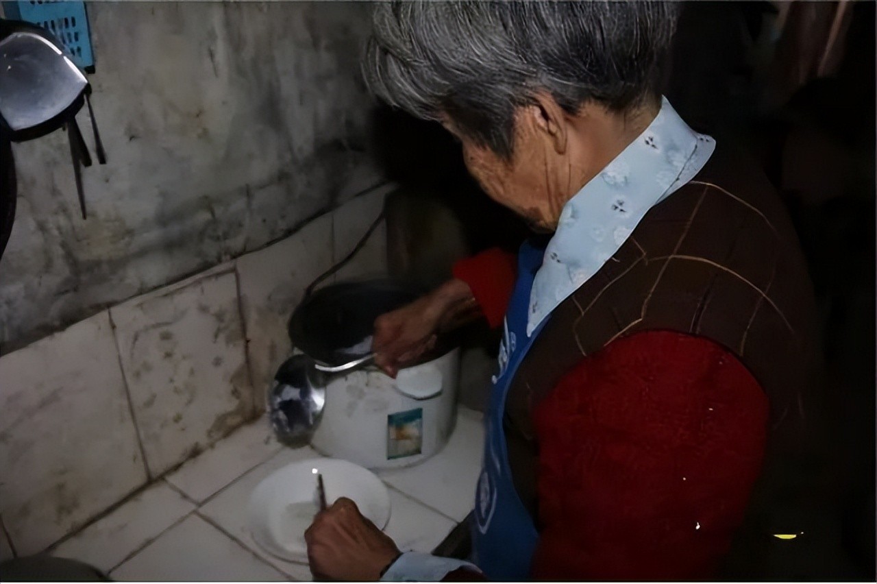 3斤米到了蒋贵英手中,就是两顿稀饭,加上一碗泡酸菜,是全家四口人一天的伙食。偶尔,蒋贵英会去菜市场捡些剩菜叶子,或者咬牙割一小块猪肉,回来给外孙补充营养。