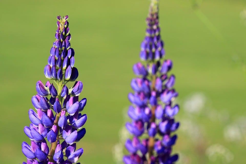 微小的豌豆荚型在长茎上开花。羽扇豆是花束的最爱。