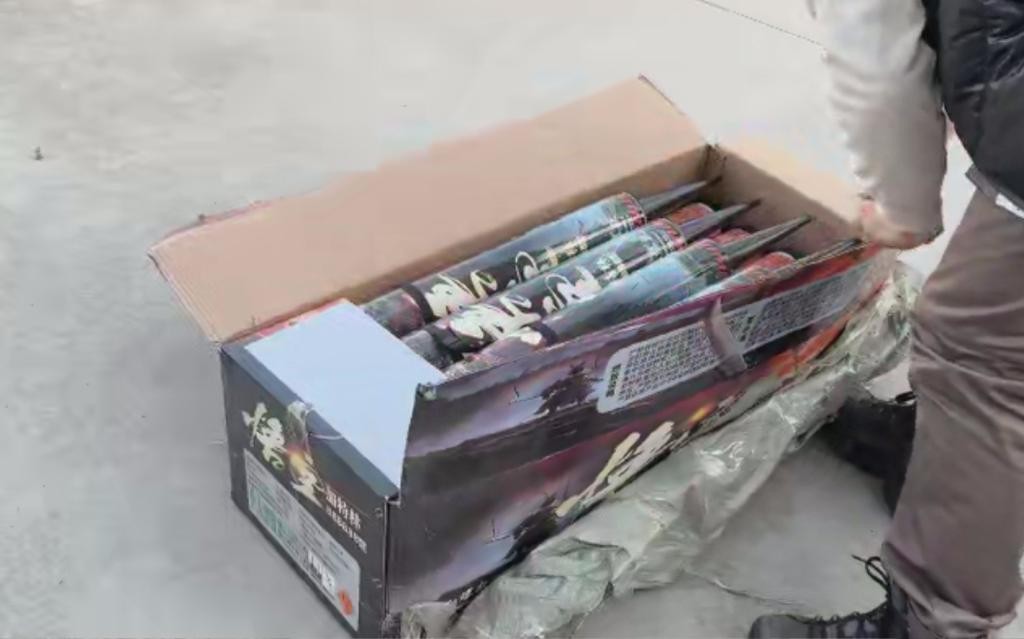 打开烟花纸箱,里面果然装着有12支“加特林”——近年走红的一款烟花,燃放时形成类似加特林机枪射击的效果,射速快,射程达数十米。