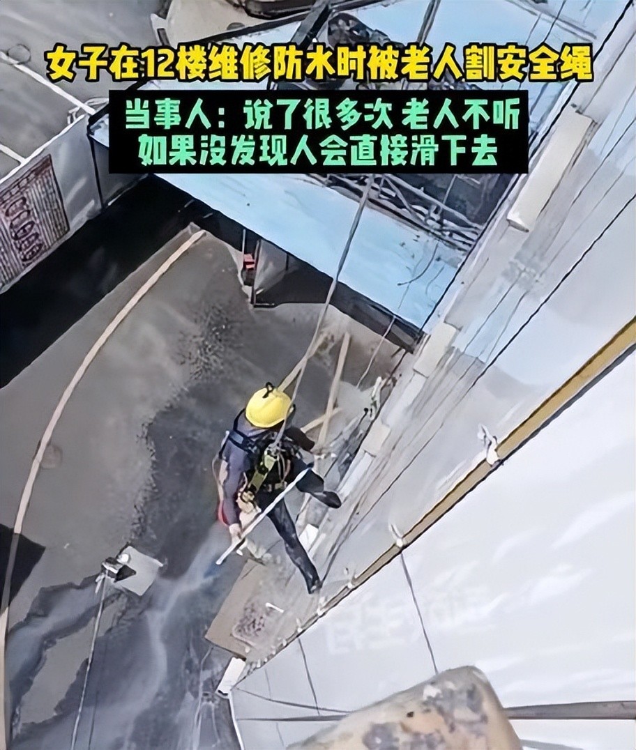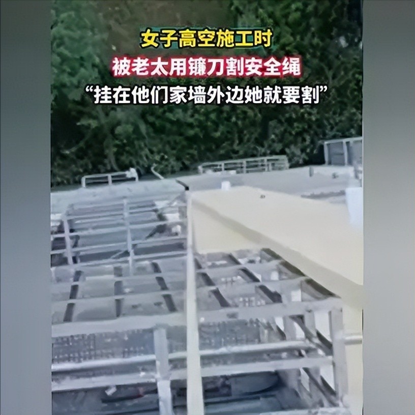 陶女士是一名高空作业者,进行外墙维修时,竟遭遇到了一位老太太的恶性行为,安全绳被她用刀割断,险些酿成大祸。