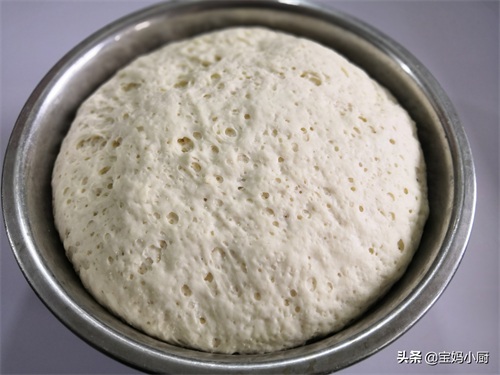 9,图中是发酵到两倍大的面团,手感轻飘飘的,密集蜂窝;