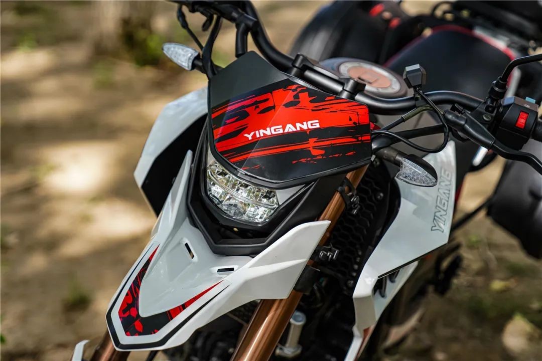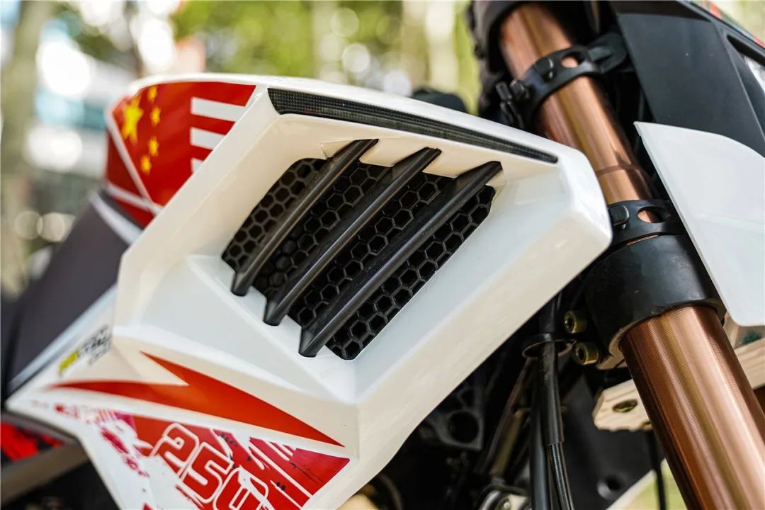 本次试驾的铁拳250采用了中国红配色,拉力车惯用的“鸟嘴”设计增加了车型辨识度,前高位挡泥板可以很好的抑制砂石飞溅,保证驾驶者的安全。