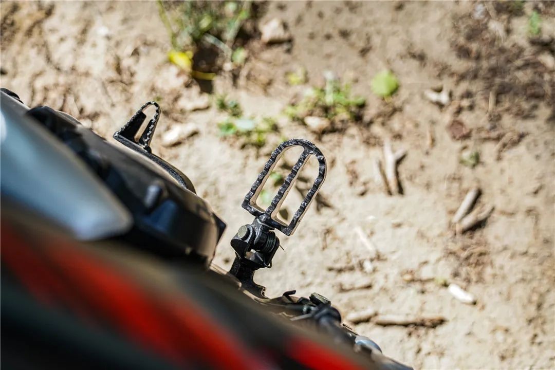 站姿骑行时,大腿可以与车身很好的贴合,原厂配备的金属锯齿脚踏可以令双脚踩踏面积更大,防滑效果也会更好。唯一可以挑出点问题的是车把高度较低,消费者可以后期花几十元更换加高码进行改装。