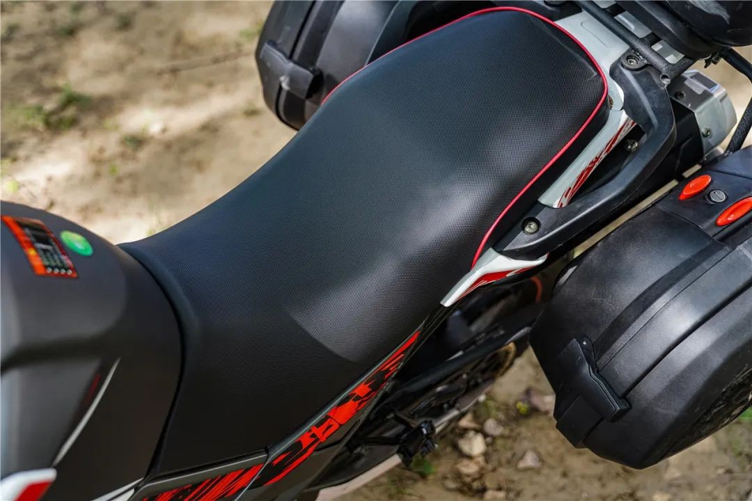 车辆座垫内部填充物饱满,乘坐舒适,对于长途摩旅来说舒适度高是非常重要的一件事。