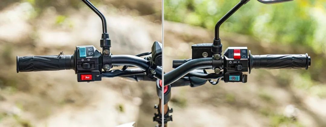 作为一款小排量硬派拉力车,变径车把的应用可以增强车把强度,倒车时减小变形几率,左侧还配有USB电源接口,方便对随身电子设备充电。