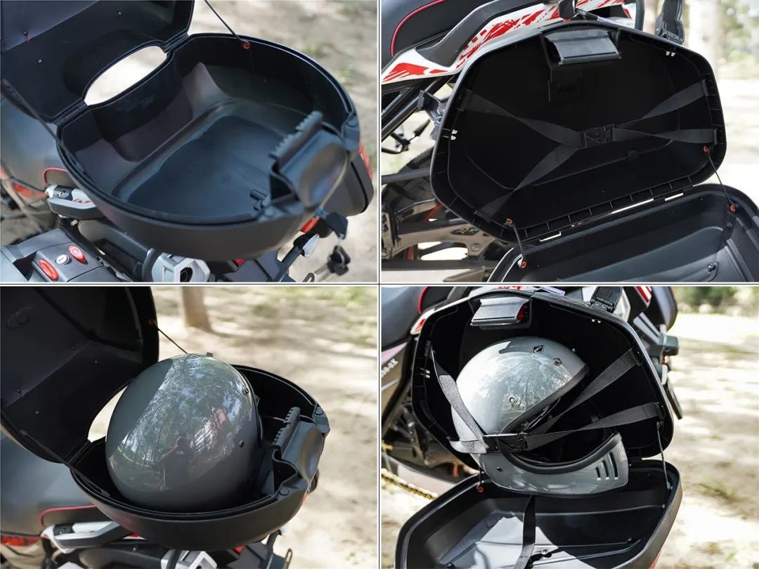 原厂配备的三箱不仅令铁拳整车更加半满,同时实用性也得到了大幅提升,尾箱可放置一顶全盔,两侧边箱内部配有固定弹力绳,