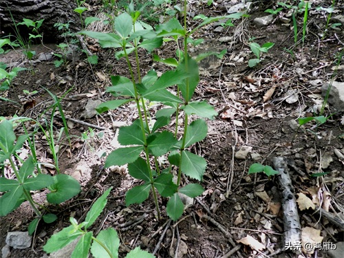 顺着小山沟径直向上爬了约200米的垂直高度,接近了山顶,路边的山菜“明叶菜”。