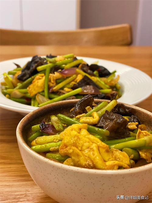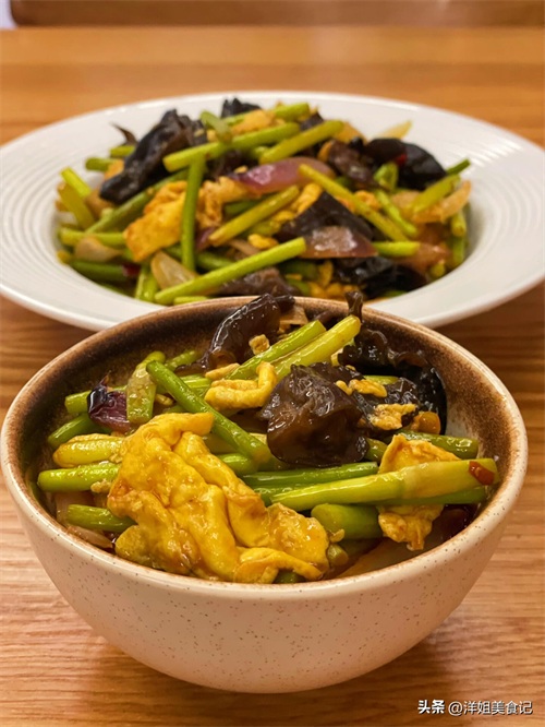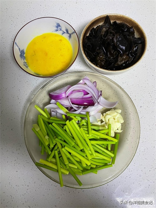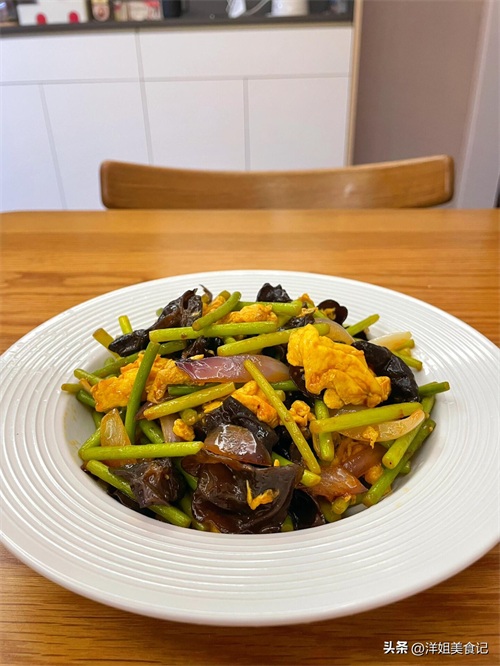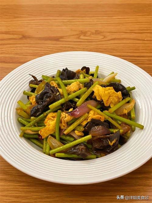 洋葱木耳蒜苔炒鸡蛋