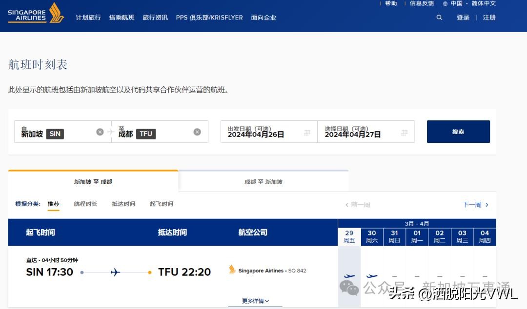 并且还贴出了新航4月份飞重庆、成都的航班时刻表~