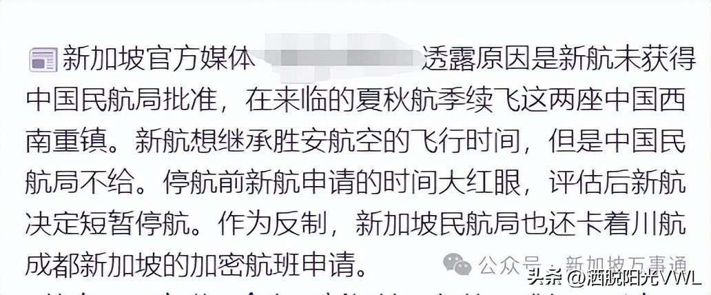 为了反制,新加坡民航局就开始卡着四川航空的加密航班申请。