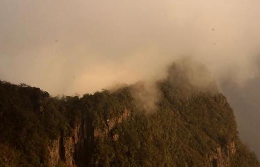 滚龙岗就是一条窄窄的山脊,两边都是万丈深渊,左边是白熊沟方向,云雾翻滚,什么都看不到,右边能看到瓦山坪、五池山庄、大坪甚至永胜乡,真是阴阳两重天。其实对于我们亲历者来说,滚龙岗虽然两边是悬崖,植物较茂盛,相对来说还算安全些。走起来并不特别害怕,很快就通过了。